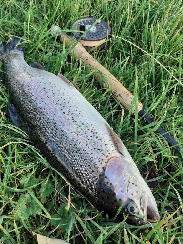 Sometimes, when I fancy a trout for the table, I’ll take the odd Rainbow trout, as I did very recently at an old favourite trout fishery. If folks aren’t in the know, I’ll briefly explain…….These fisheries stock with sustainable rainbow trout, and taking the odd fish, is perfectly acceptable. But, as you all know, I’m a staunch wild brown trout angler, and have been since the age of fourteen, on and off. All wild fish are always, always, always released. A wild fish, is a precious fish !!!!!
